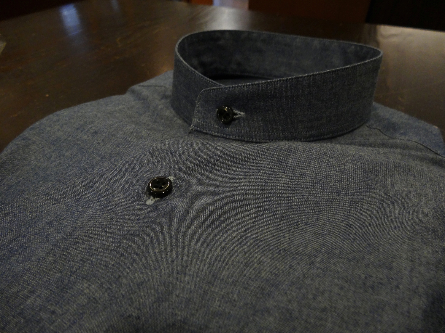 スタンドカラー、スタンドカラーシャツ、オーダーシャツ、インディゴ、藍染、デニム、バンドカラー、ZERBINO