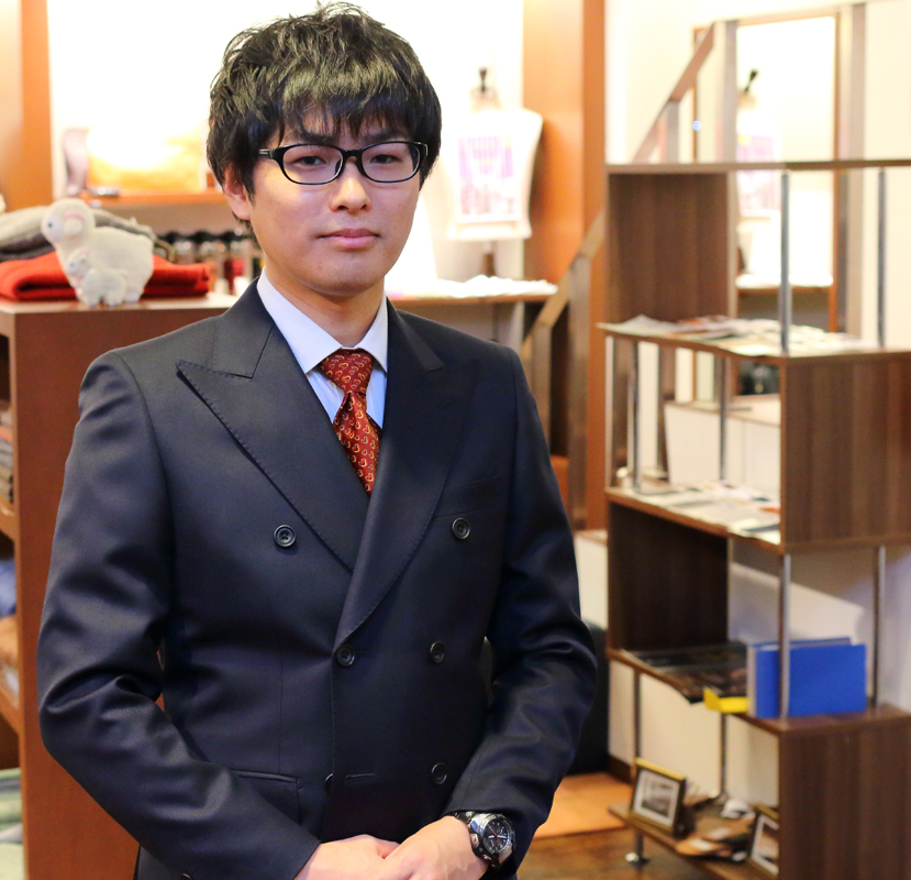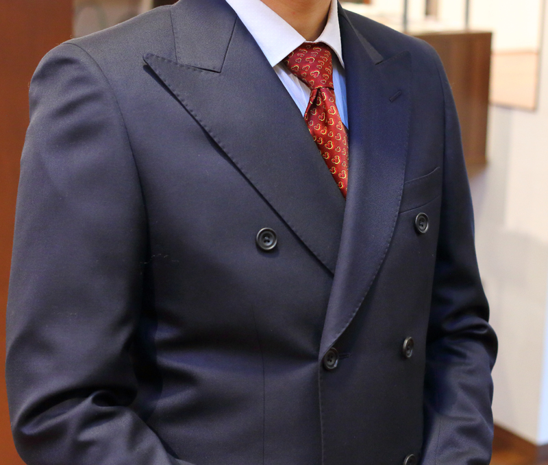 今回はE様初のダブルブレステッドスーツ。