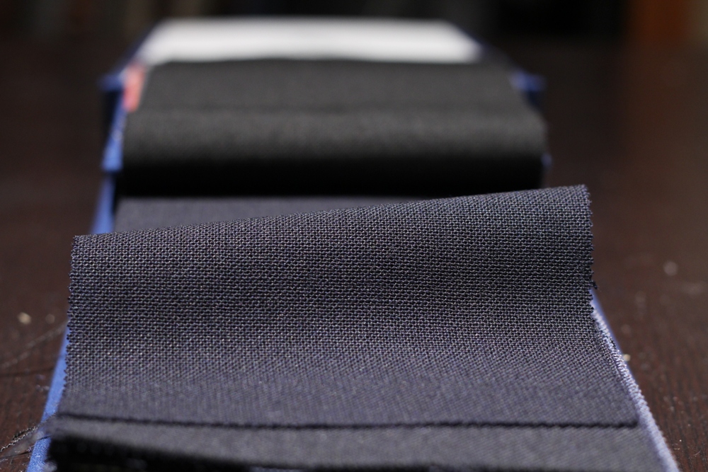 織り方は秋冬物の生地に多くみられる綾織。