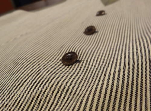 一見、ヒッコリー調の非常にカジュアルなジレですが