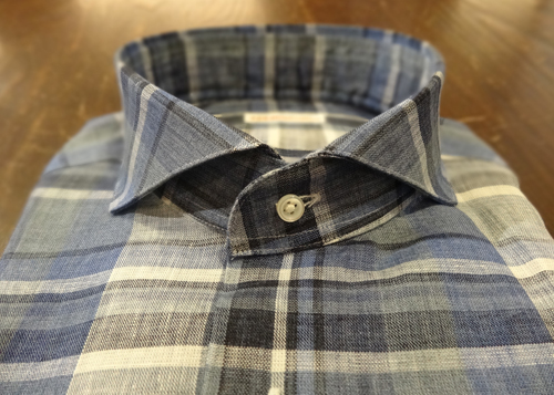 麻素材のチェックシャツはございませんが、この機会にチェックシャツを