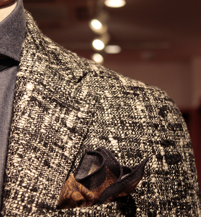 凹凸感が特徴的なフェルラの生地で仕立てました。