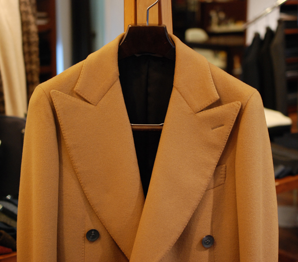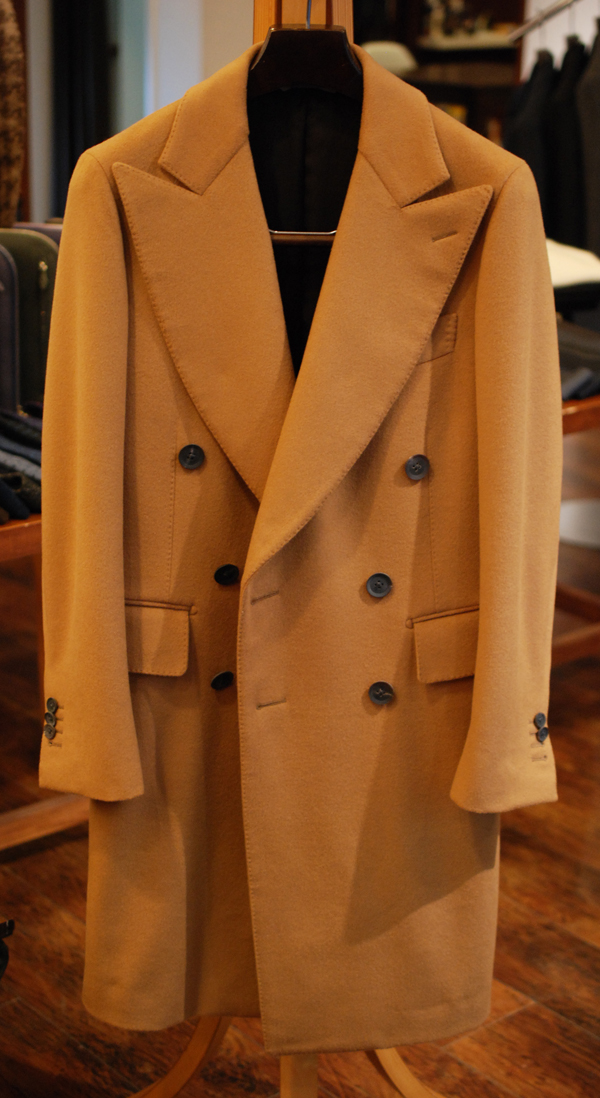 今回、私がオーダーしたのは、久しぶりにキャメルのダブルチェスターコート。