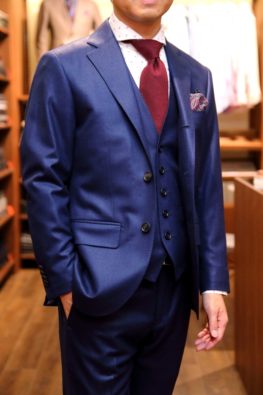 やや明るめのブルー無地スーツ。