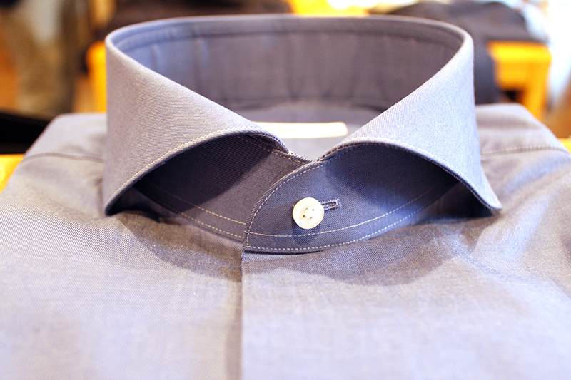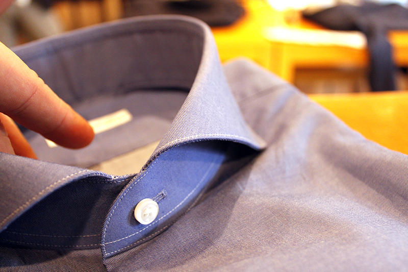 コチラのインディゴ生地を使用したオーダーシャツ。