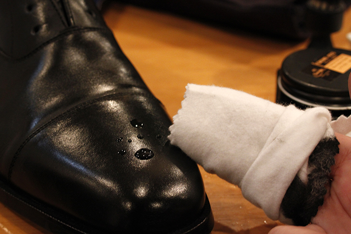 ①レザーローションで汚れを落としつつ栄養を与えます。