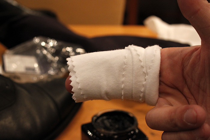 まずは馬毛ブラシで全体の汚れを落としたら…