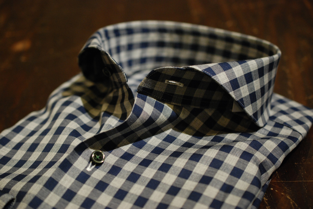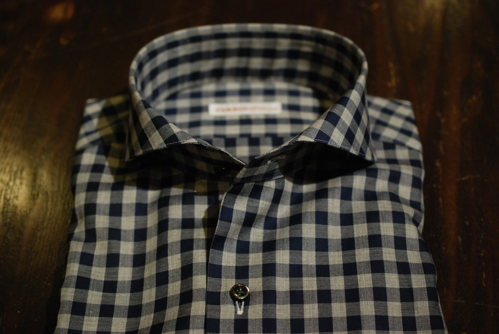 グレートネイビーのギンガムチェックシャツ。