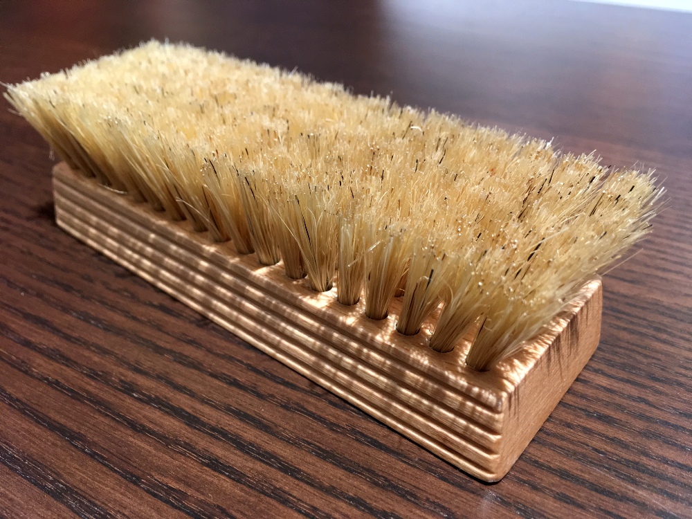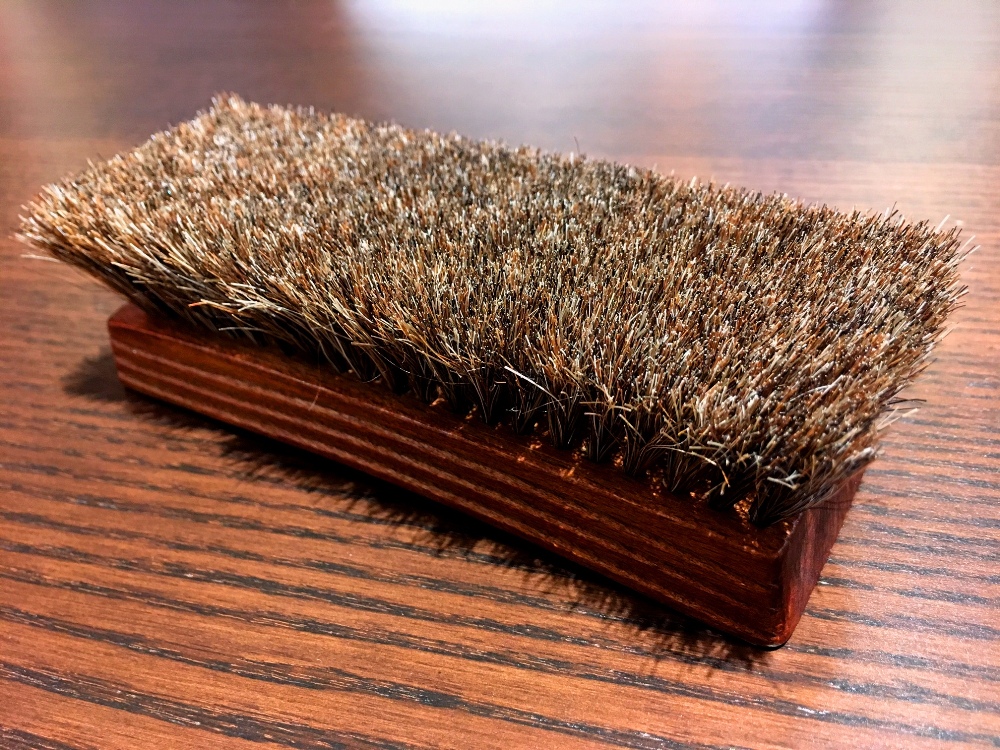 馬毛でほこりを落としたら豚毛ブリストルブラシの登場です。