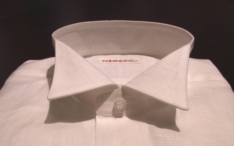 リネンのカジュアルシャツ生地に、フォーマルなウィングカラー