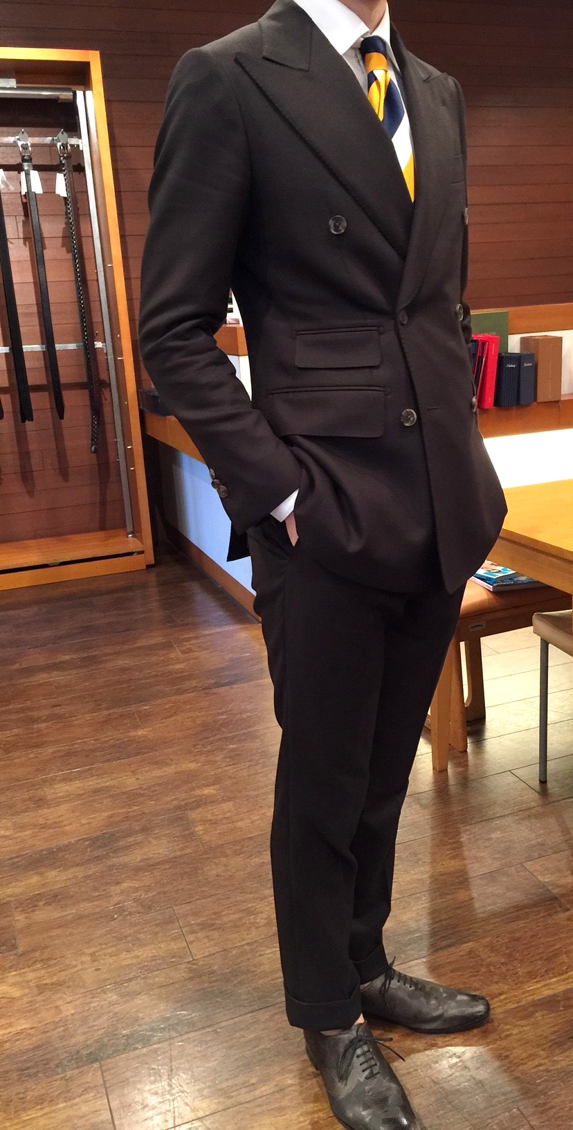 今回は、茶の生地でダブル仕立て、チェンジP付きで