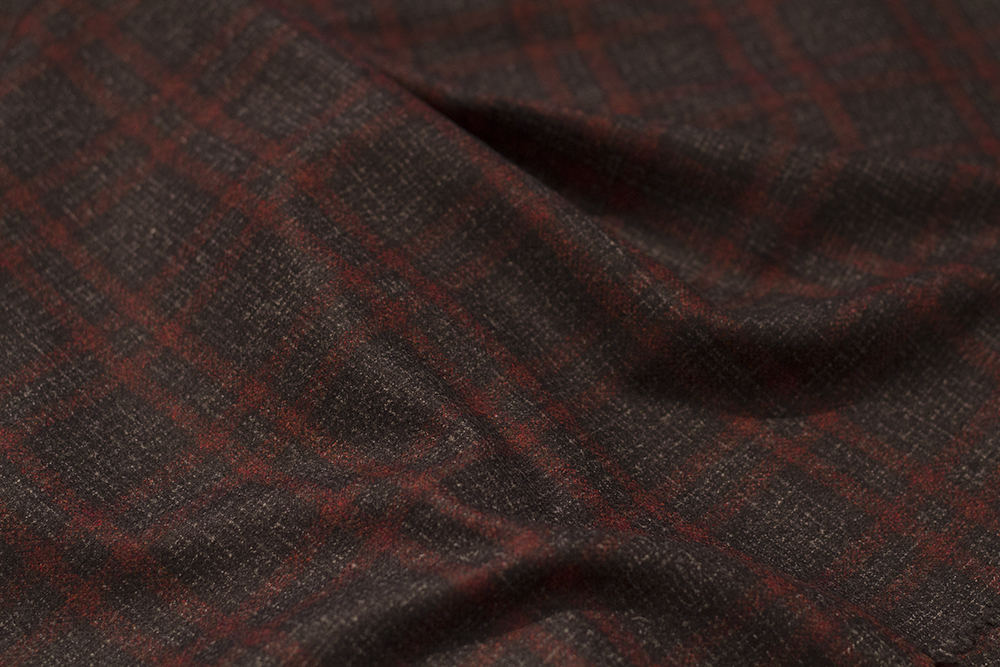 チャコールグレーに赤のチェックが走っており