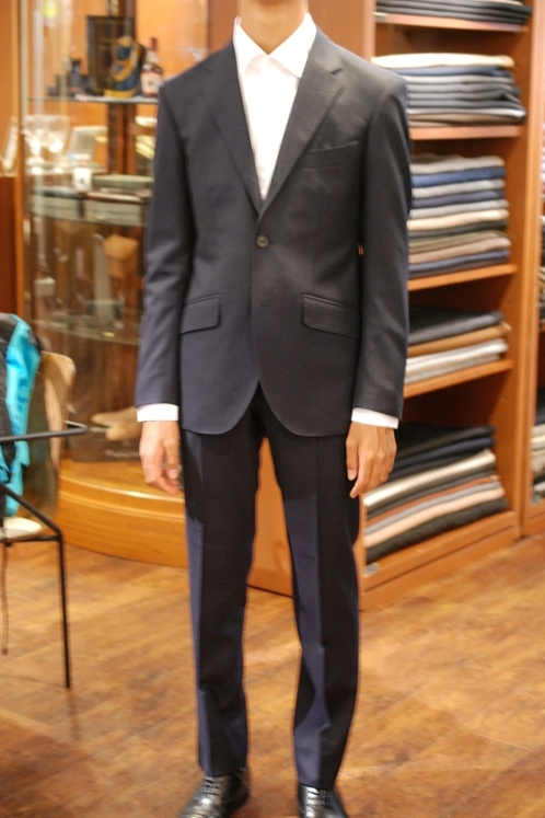 深いネイビーに同じくオーダー頂いた白いシャツの衿がさわやかです。