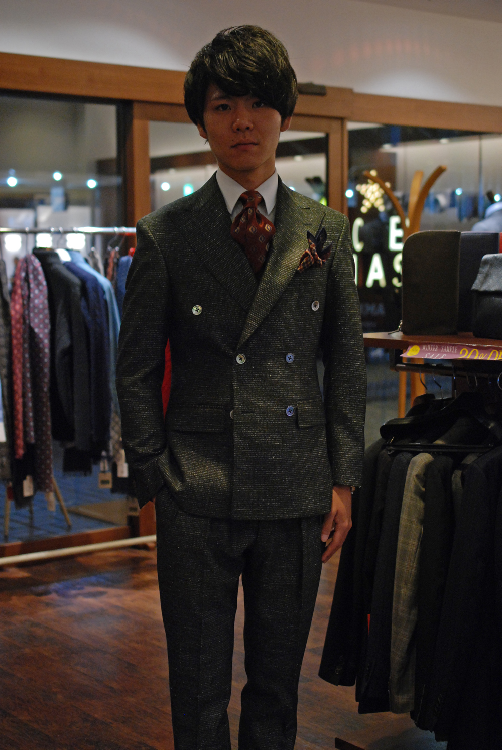 上着はダブルブレステッドにしました。