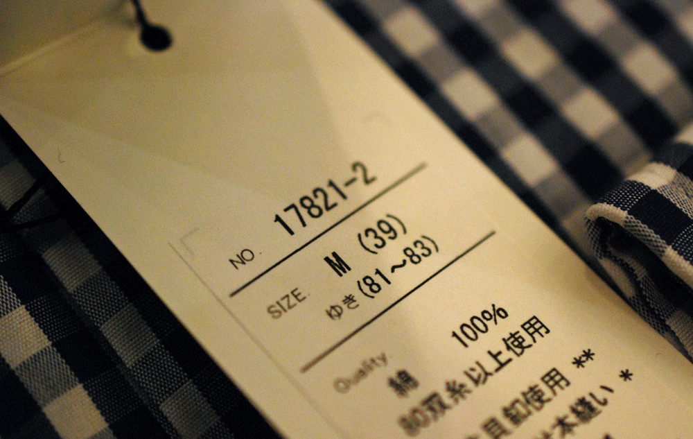 ZERBINOのシャツの表記はこのようになっています。