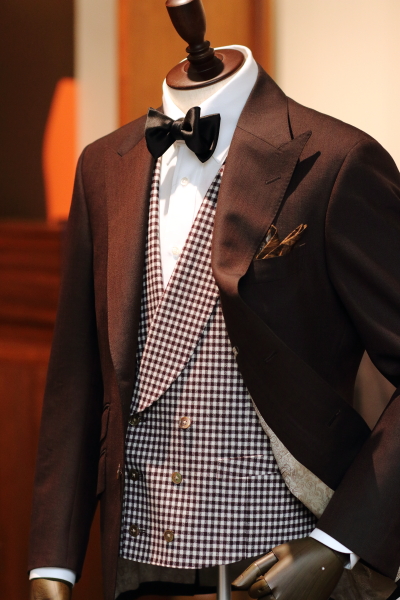 今回はブラウンの生地でクラシックにお仕立ていただきました。