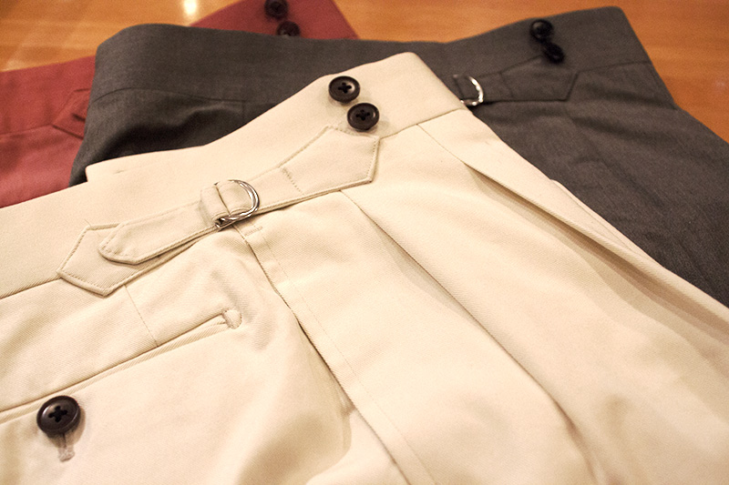 ディティールは2プリーツにサイド尾錠