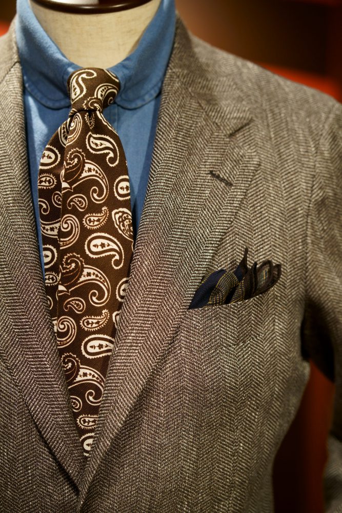 イタリア「アンジェリコ」のリネン混ブラウンへリンボン。