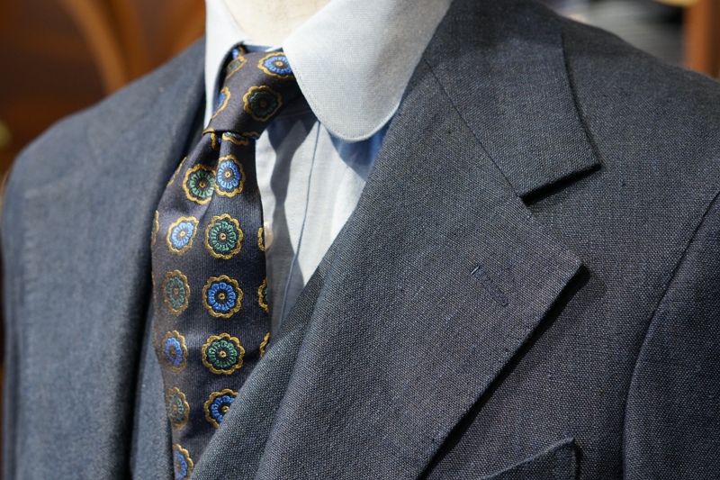 このサンプルは三つ揃えで衿付きベストも付いております。