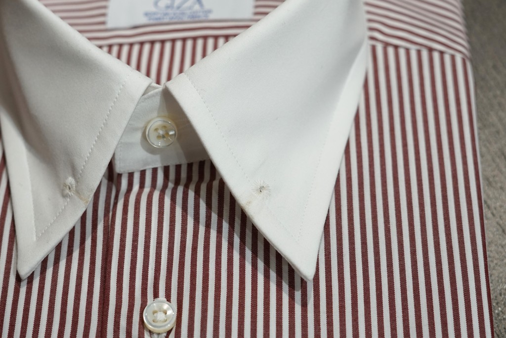 この形はピンホールの穴が見えてしまうため、普通のレギュラーカラーの方が相性がいいかもしれません。