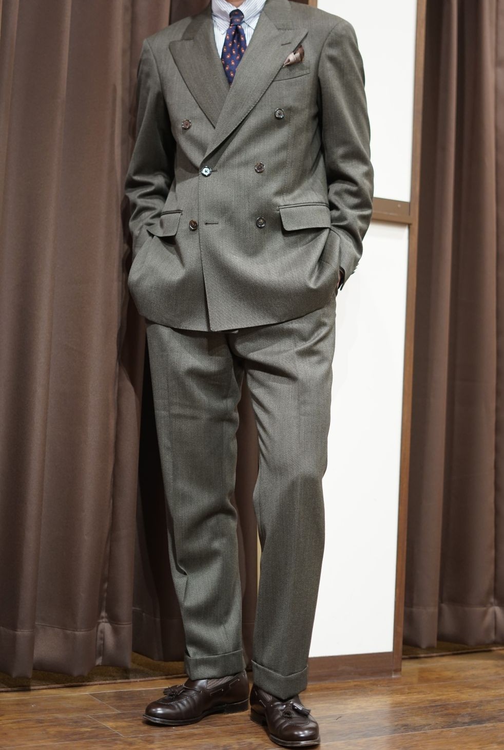 本日は、今季の秋冬で仕立てた私物のダブルスーツが