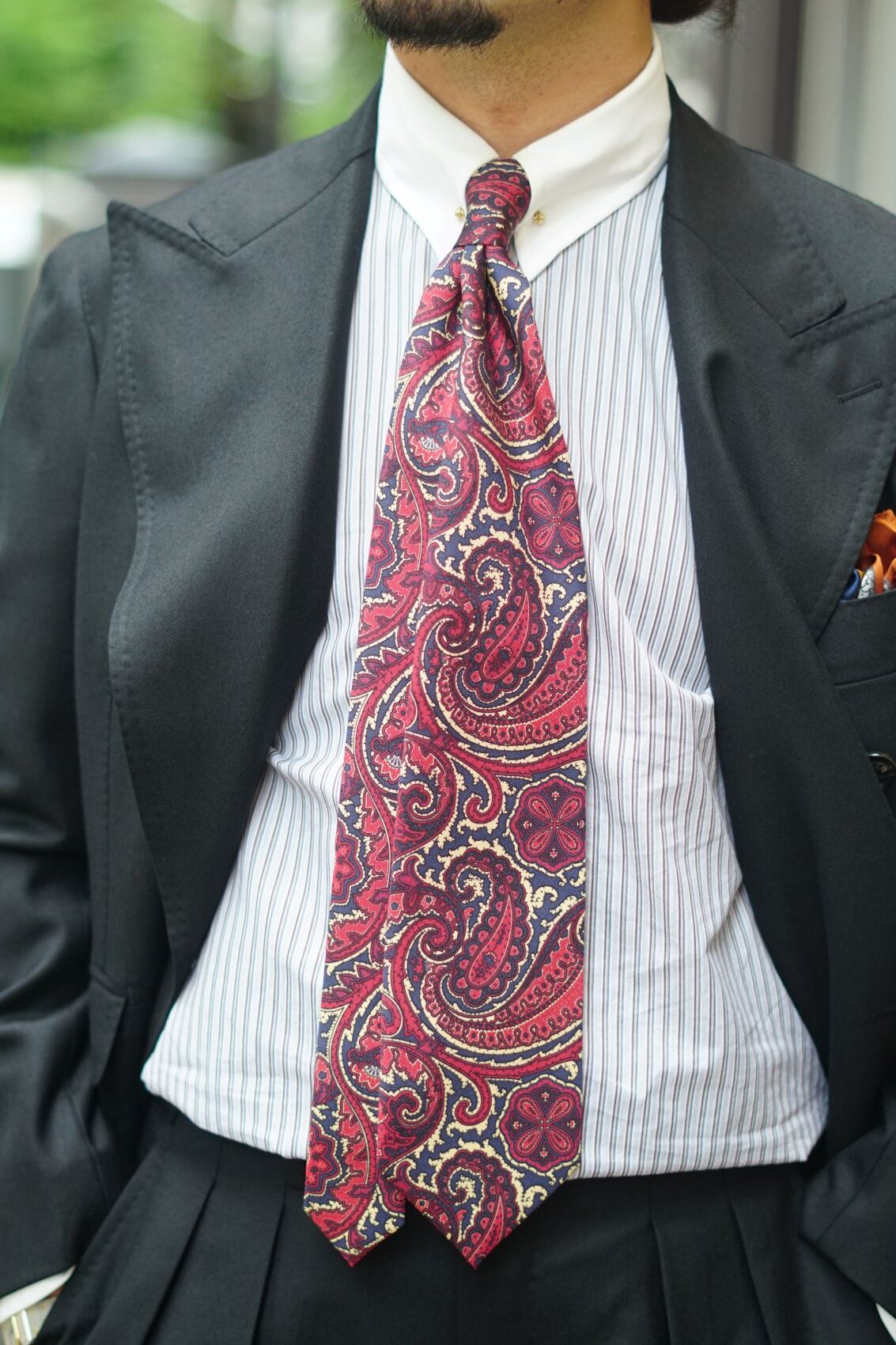 逆にシンプルなスーツをご着用になる方には、たまにこの手のネクタイを合わせて気分を上げて頂きたいものです。