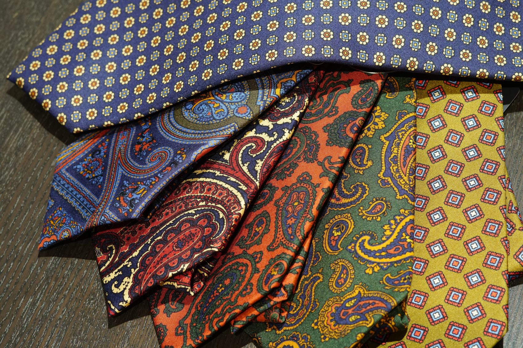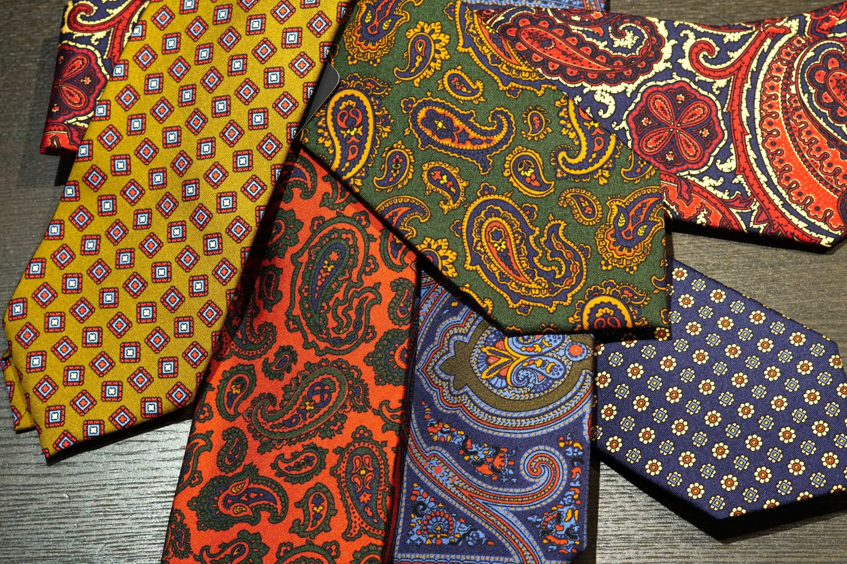 良く見るプリントネクタイはイタリア製が多く、ペラっとした薄さが特徴ですが
