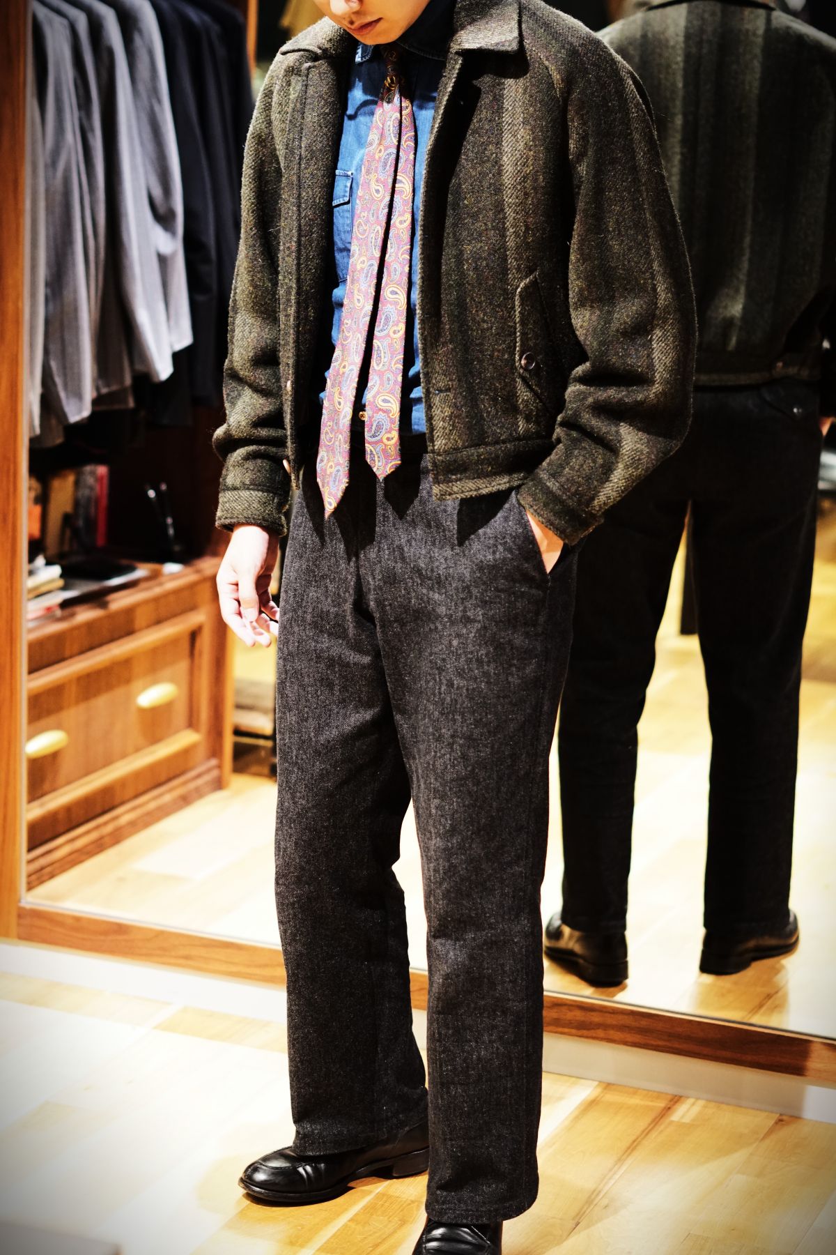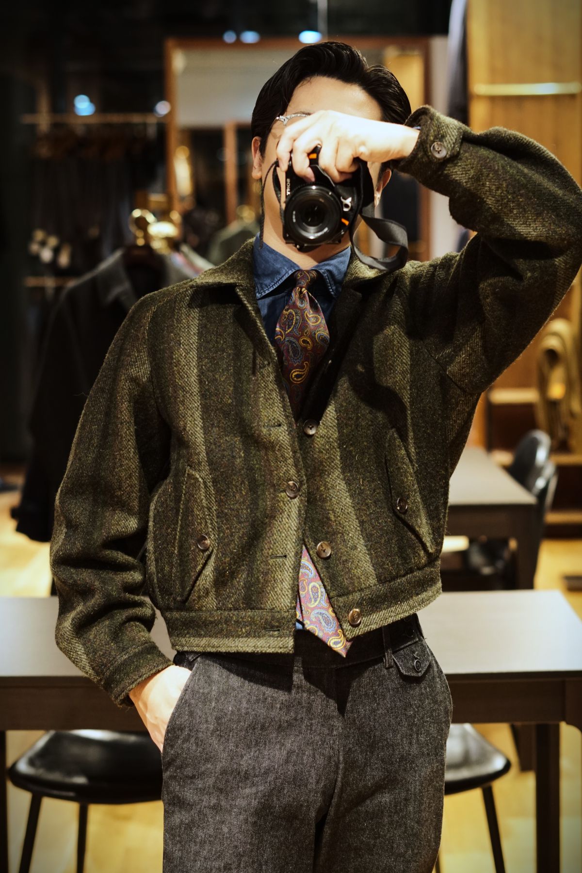 如何でしょうか。ハリントンらしからぬ肉厚なツイード生地にハリスらしからぬグリーンの大柄ストライプ。