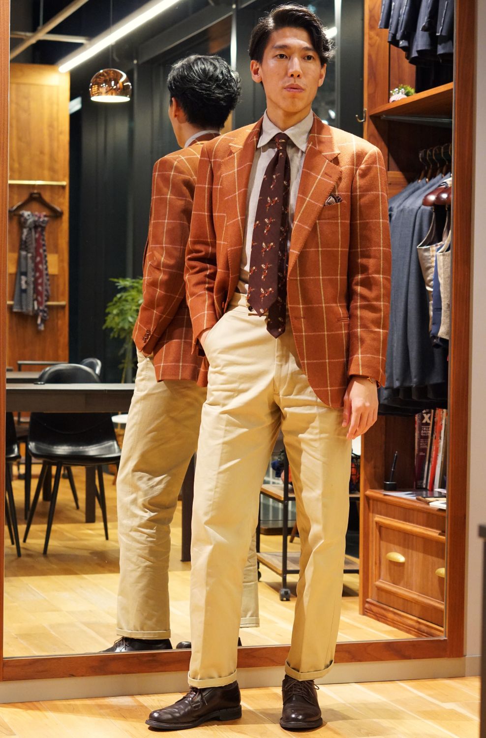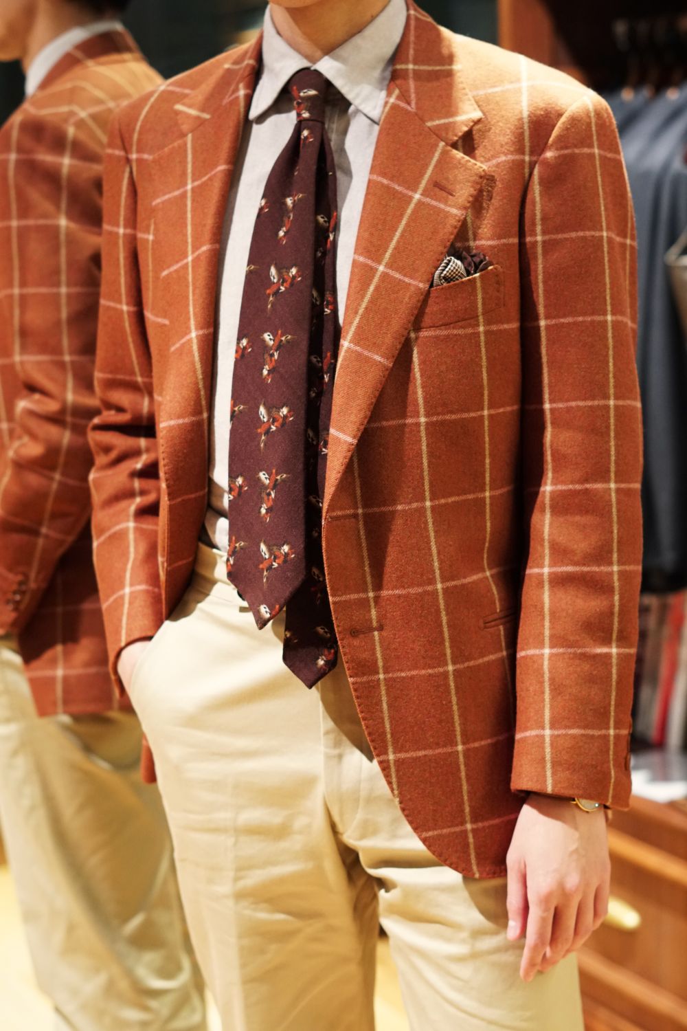 今季ハーディミニスの生地でカントリーな風合いのジャケット生地が入ってきたのですが、それも縦横違う色のラインが走っていますし、ハリスもまた縦横微妙に違う色を走らせてる時があるんですよね。