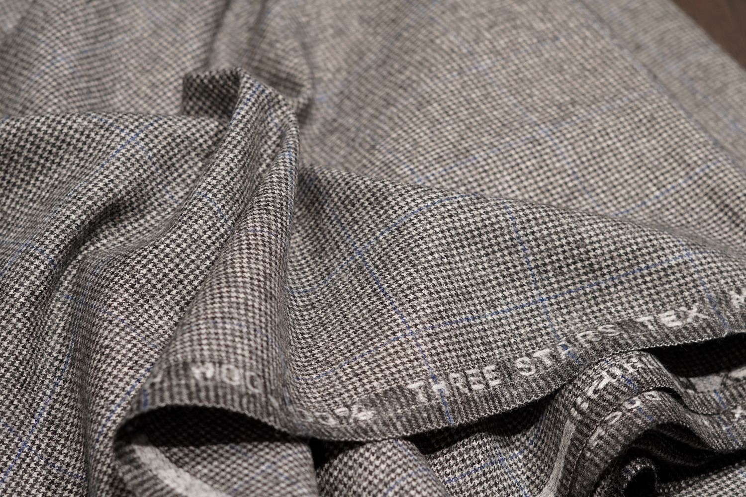 遠目には見えないこのブルーが、スーツになった際には、照明や太陽光の下でふとした瞬間にほんのりと主張する訳ですが、この「隠し味」こそがクラシックスーツの醍醐味と言ってもいいかもしれません。