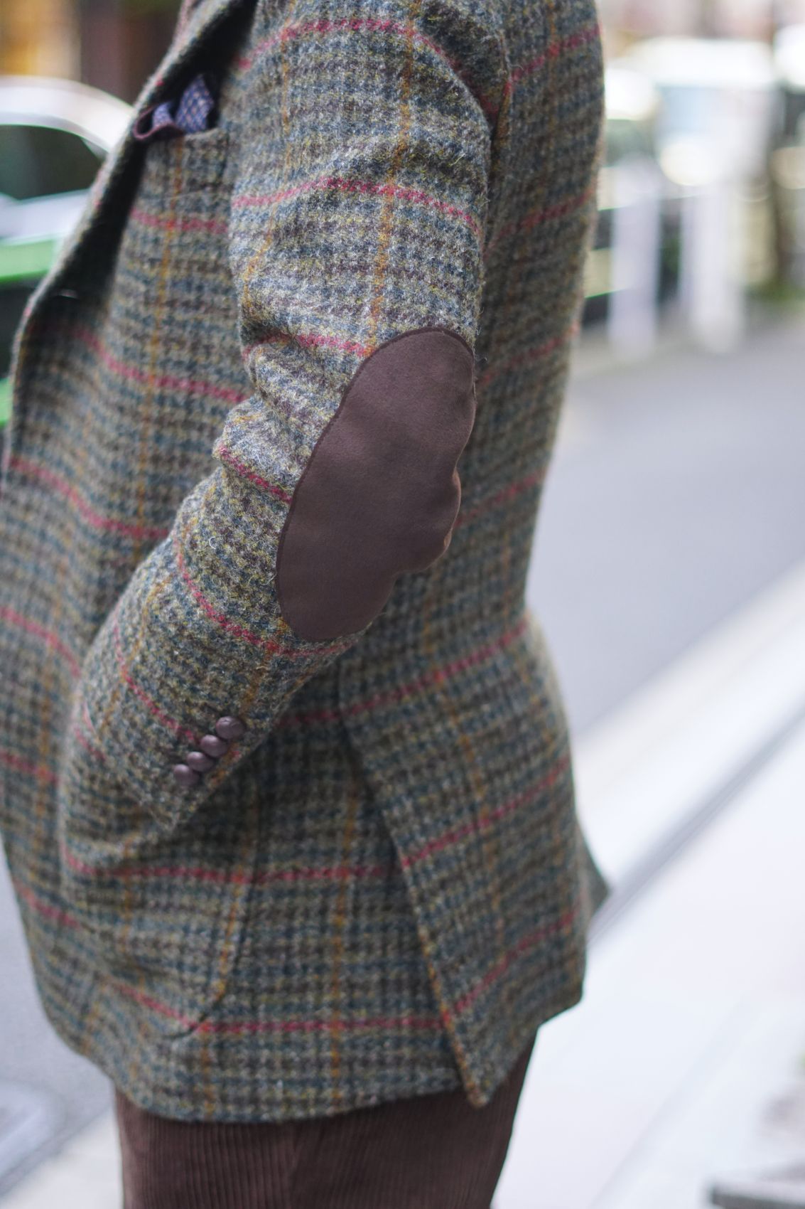 エルボーパッチは本来、机に肘をついたり、ハンティングで地面に手をついたりする際の耐久性向上が目的ですが、その歴史的な意味合いが、ジャケットに確かな物語を与えてくれます。