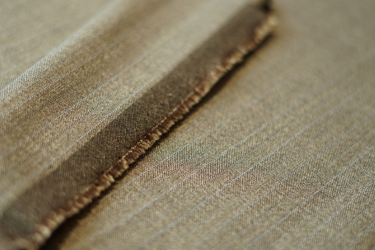 こちらの生地をよく見ると、緯糸に並ぶはブラウンとベージュ…。